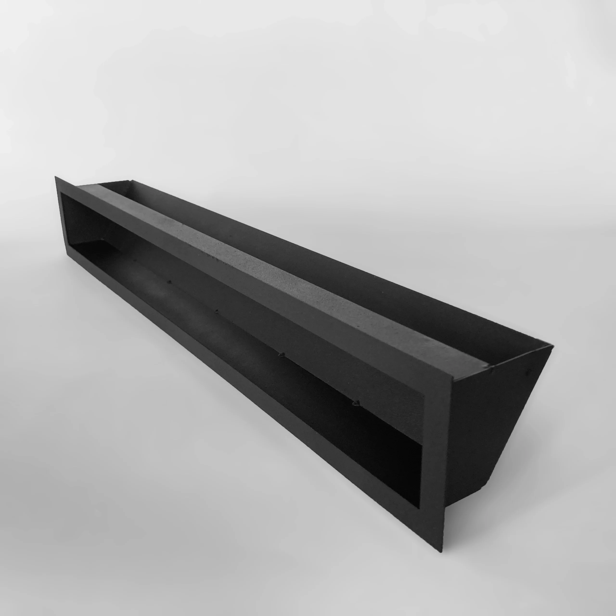 Nowoczesna kratka kominkowa typu luft o minimalistycznym designie, wykonana z wysokiej jakości stali i pokryta trwałą farbą proszkową. Idealna do nowoczesnych zabudów kominkowych oraz systemów dystrybucji gorącego powietrza (DGP).