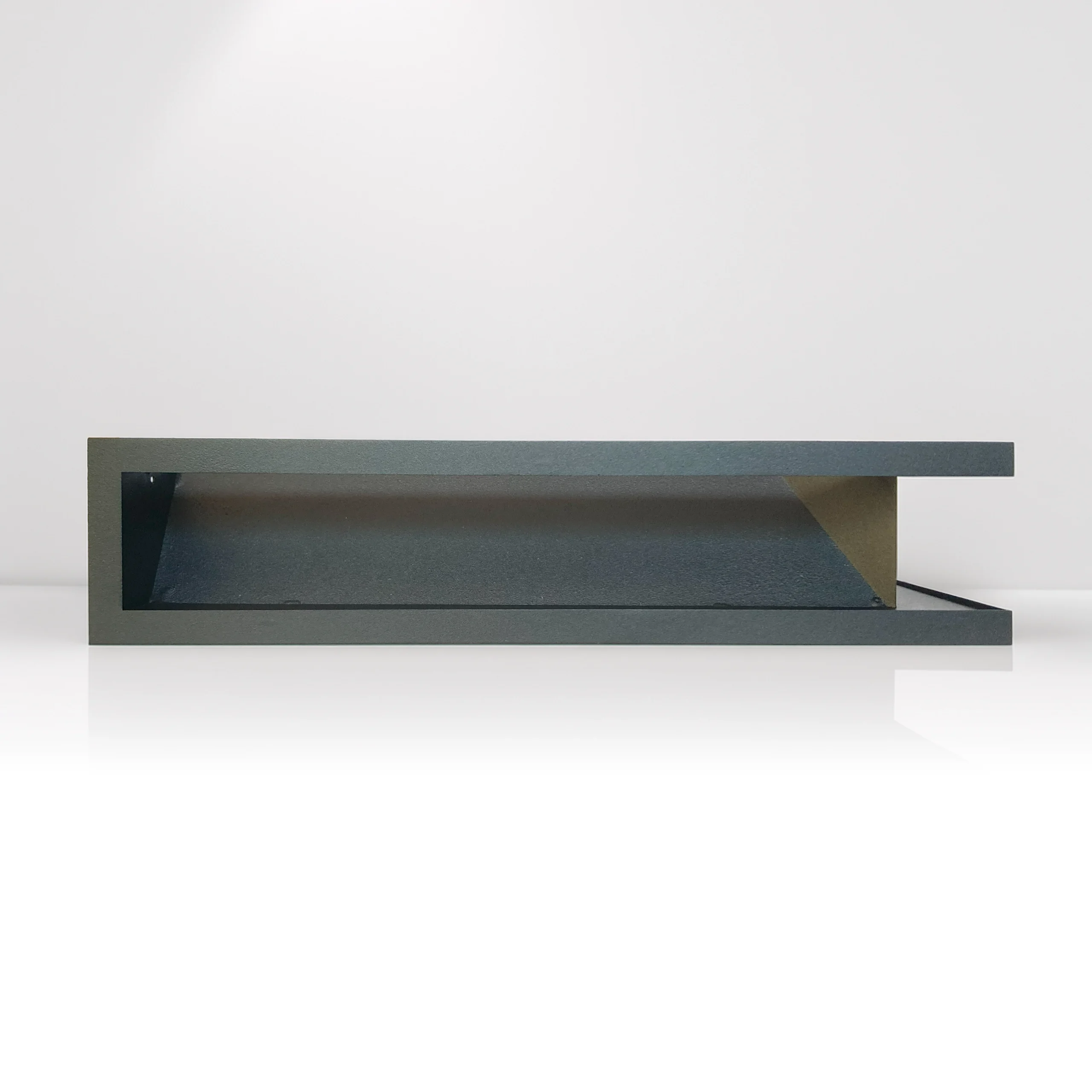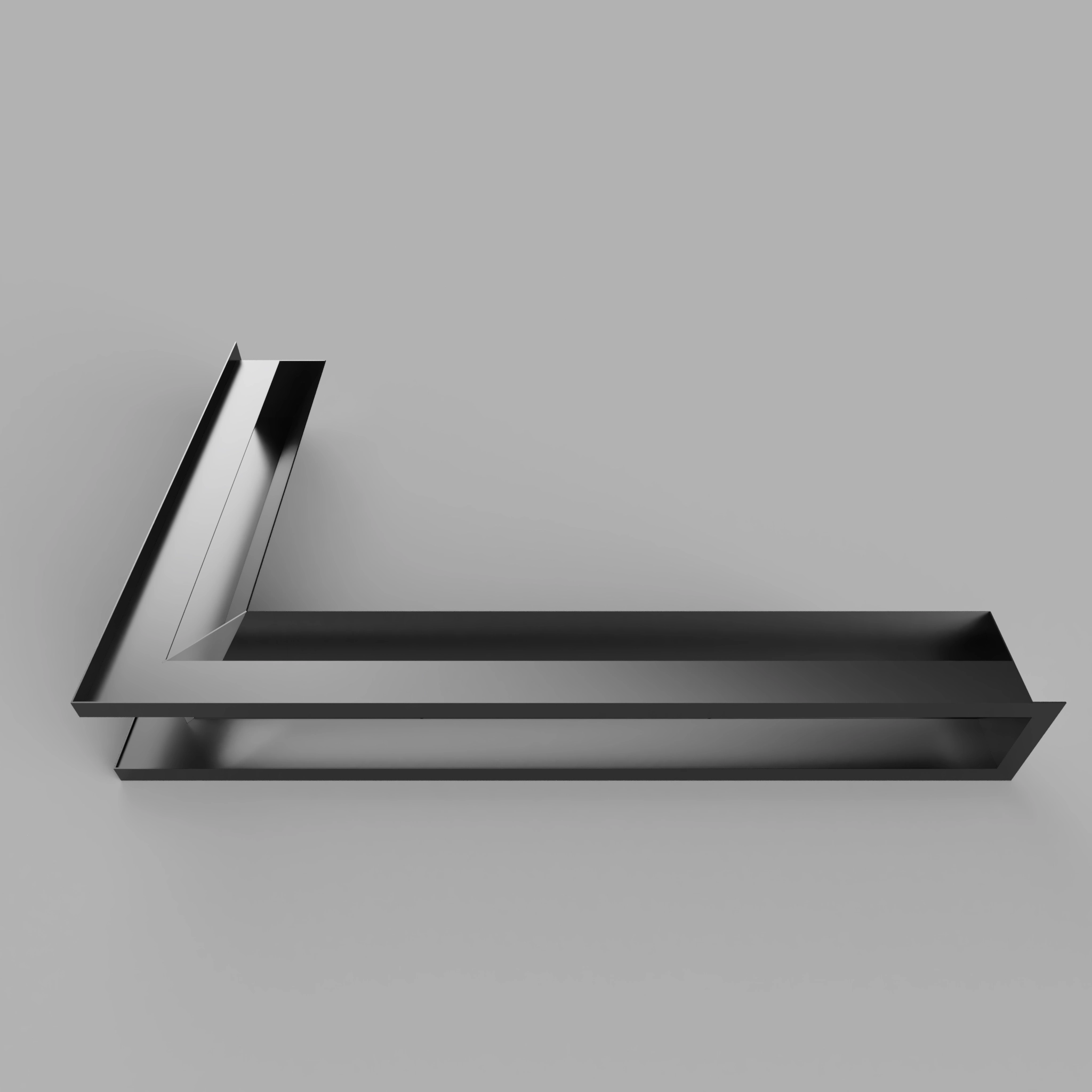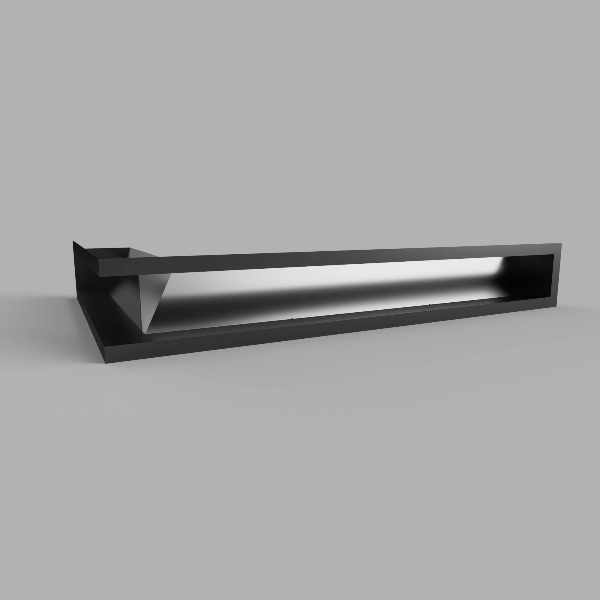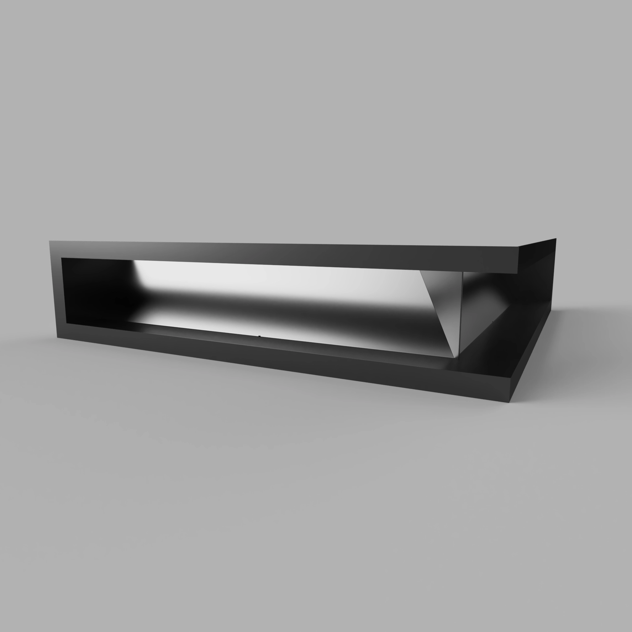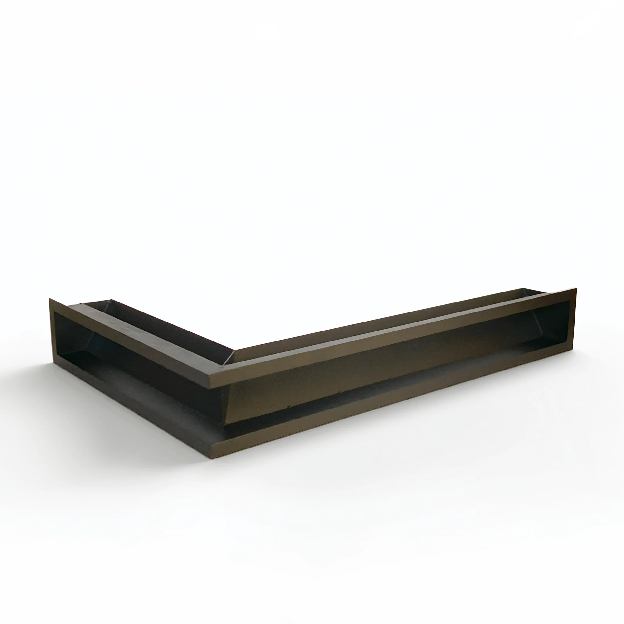 Nowoczesna kratka kominkowa narożna typu luft o minimalistycznym designie, wykonana z wysokiej jakości stali i pokryta trwałą farbą proszkową. Idealna do nowoczesnych zabudów kominkowych oraz systemów dystrybucji gorącego powietrza (DGP).