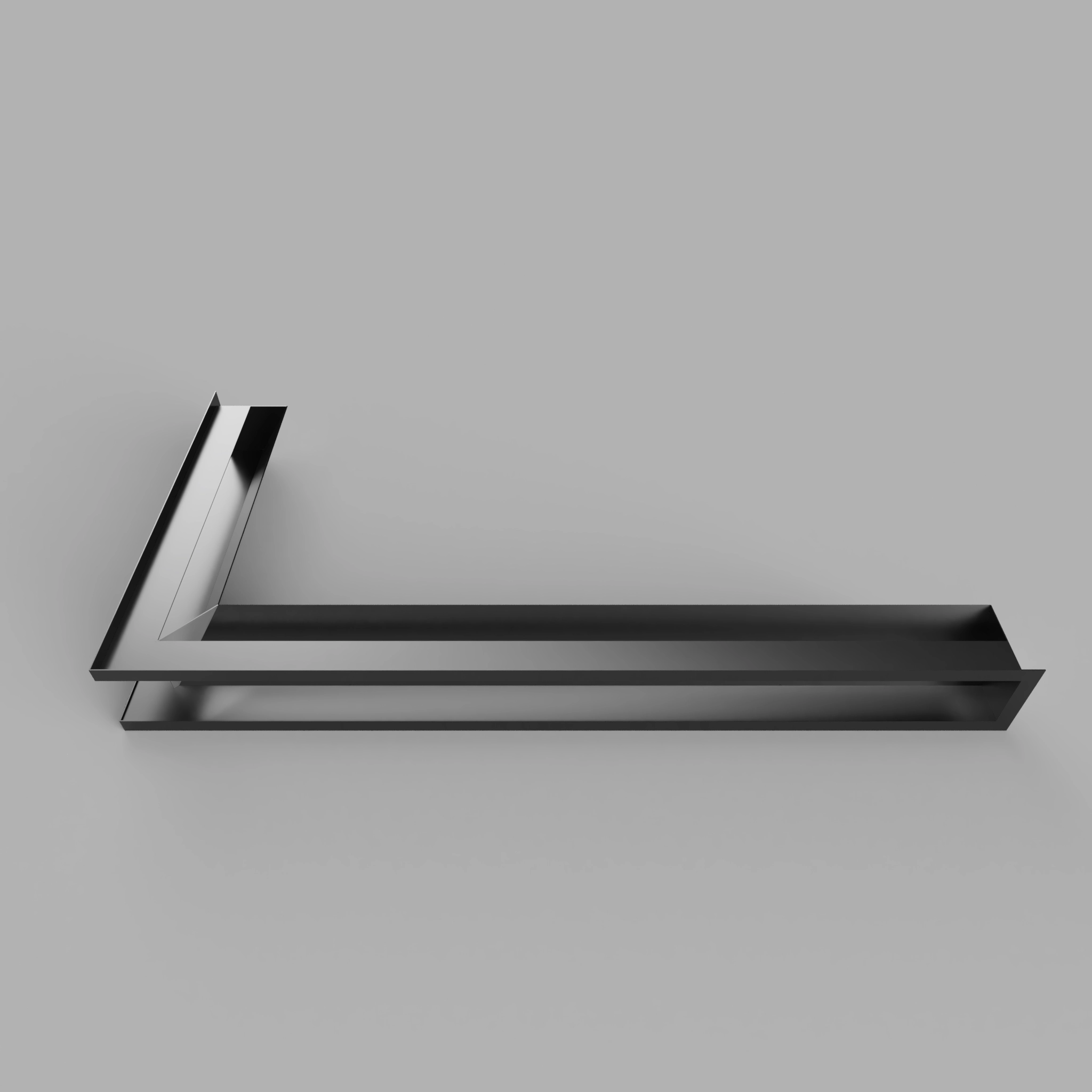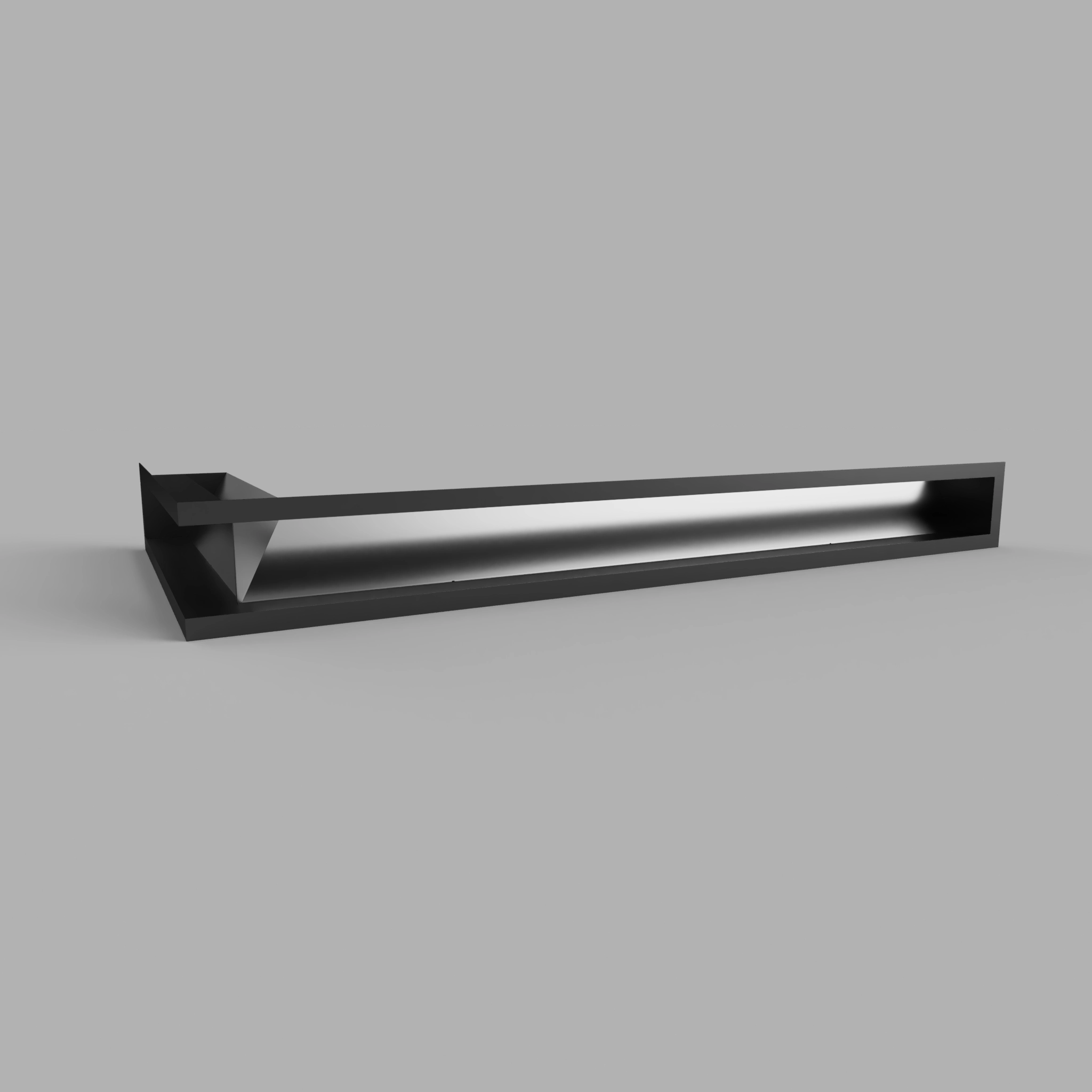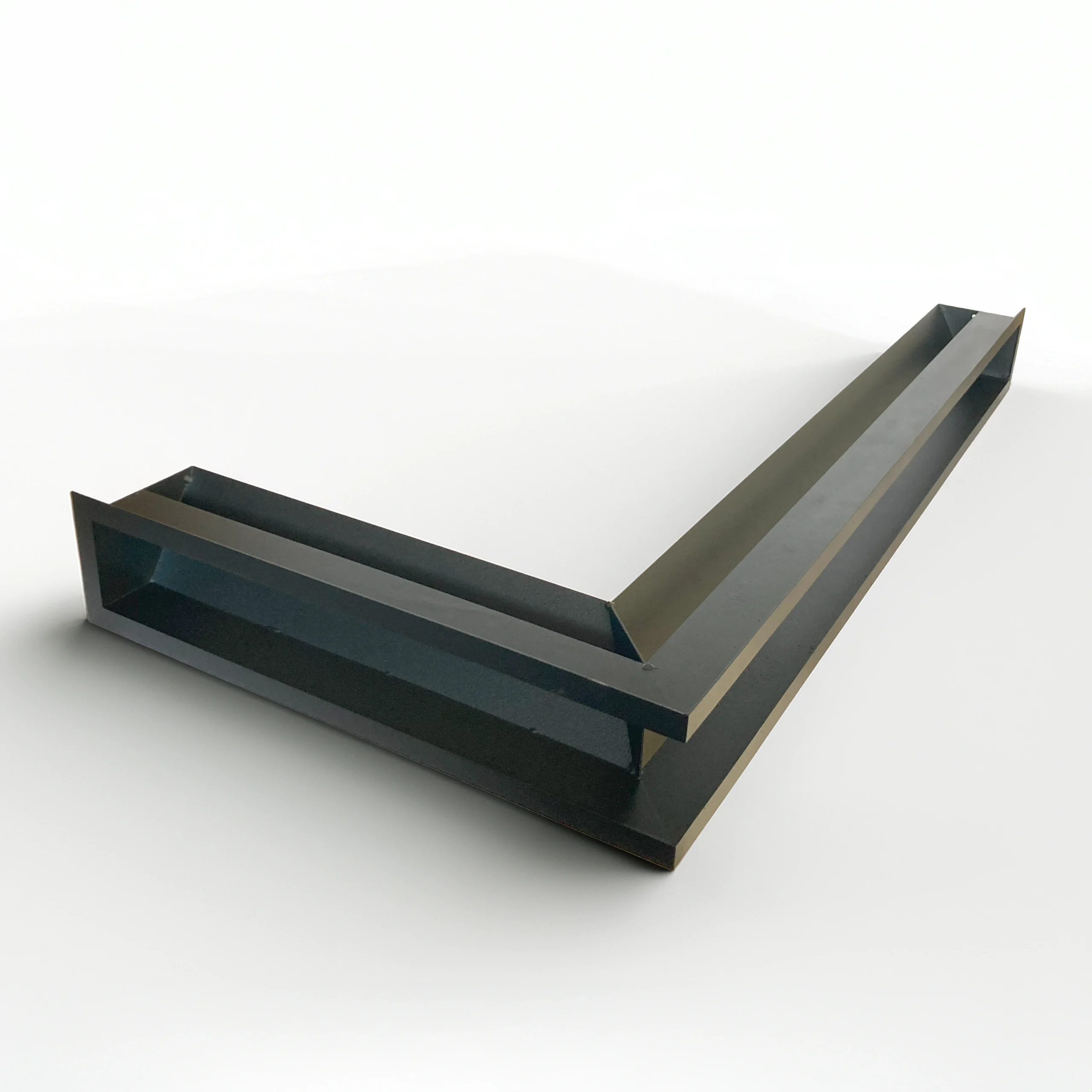 Nowoczesna kratka kominkowa narożna typu luft o minimalistycznym designie, wykonana z wysokiej jakości stali i pokryta trwałą farbą proszkową. Idealna do nowoczesnych zabudów kominkowych oraz systemów dystrybucji gorącego powietrza (DGP).
